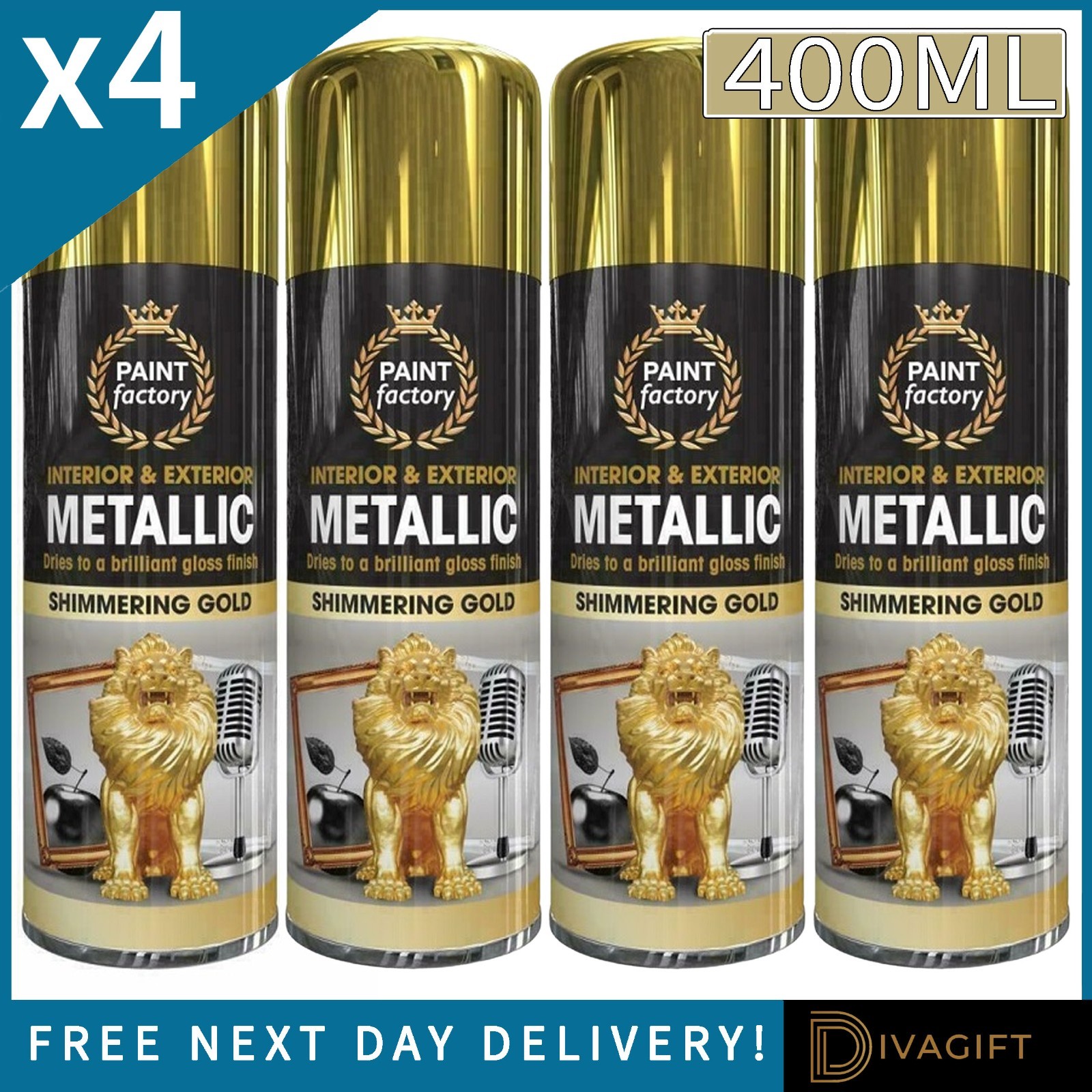 4x New 400ml Gold Metallic Spray Paint Aerosol Matt Gloss Finish for Wood Metal