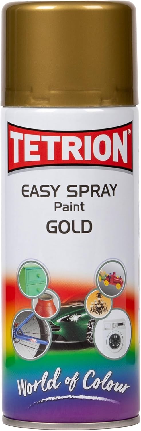 Tetrion Gold Spray Paint 400ml - Quick-dry for Wood, Metal, Ceramic & Plastic - Durable Finish, DIY Projects