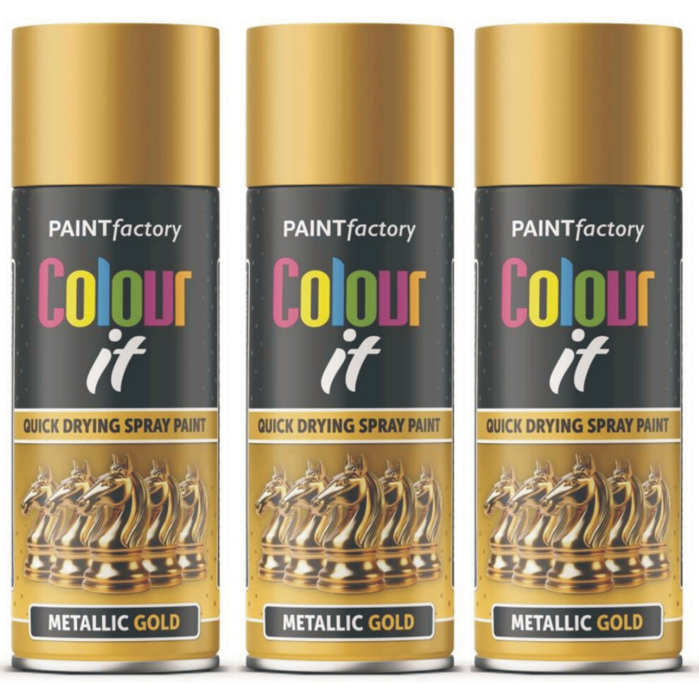 3 x METALLIC GOLD SPRAY PAINT 400ML ALL-PURPOSE AEROSOL FOR WOOD METAL PLASTIC