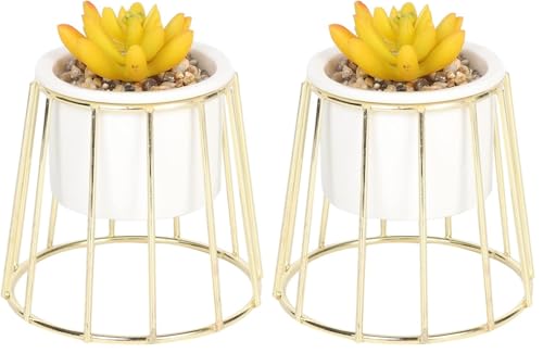 Sleepdown Halo Ochre Succulent Artificial Faux Plant Gold Cage Stand for Home Office Bathroom Decor Indoor Decoration Aesthetics, Small (Pack of 2)