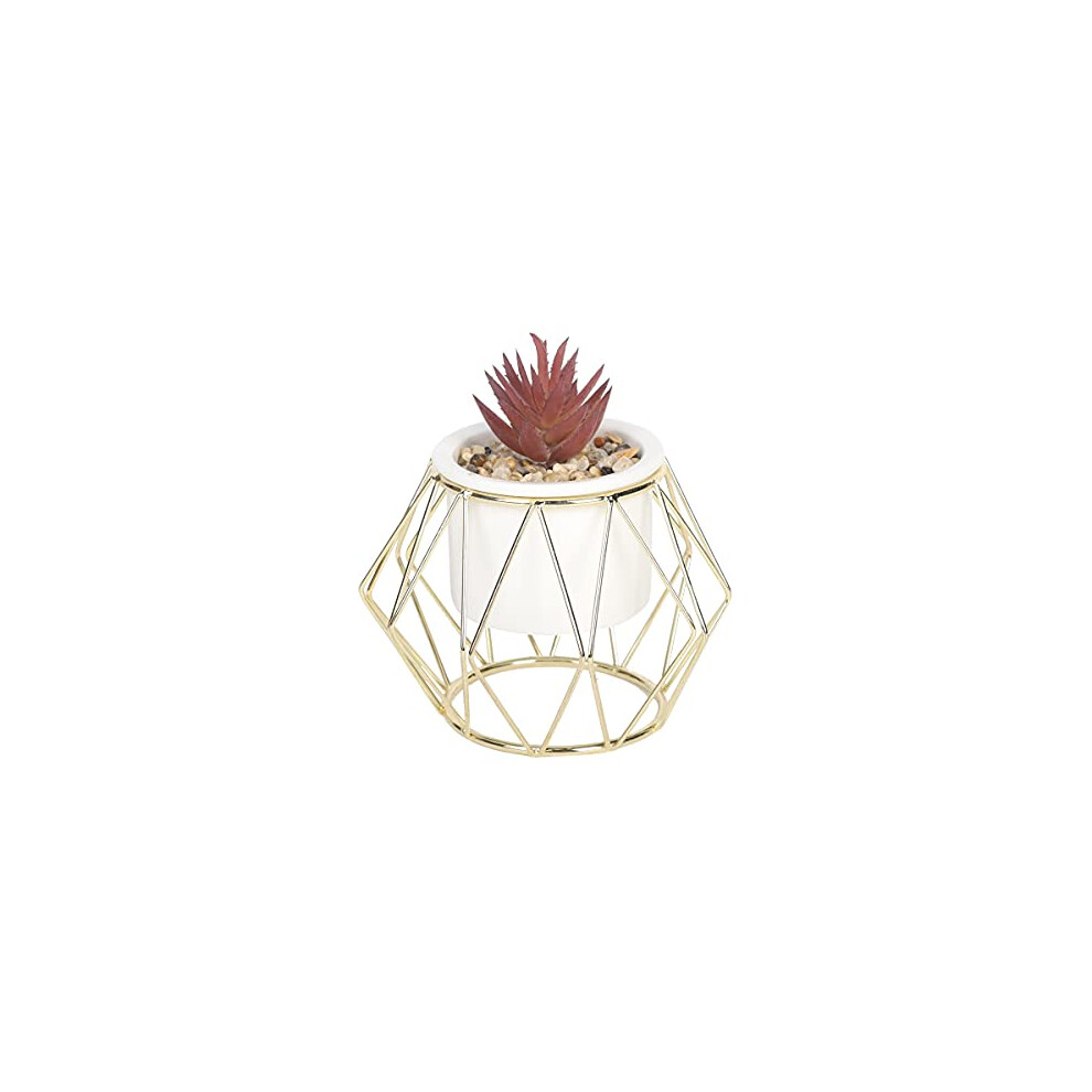 Sleepdown Halo Ochre Succulent Artificial Faux Plant Gold Cage Stand for Home Office Bathroom Decor Indoor Decoration Aesthetics, Small