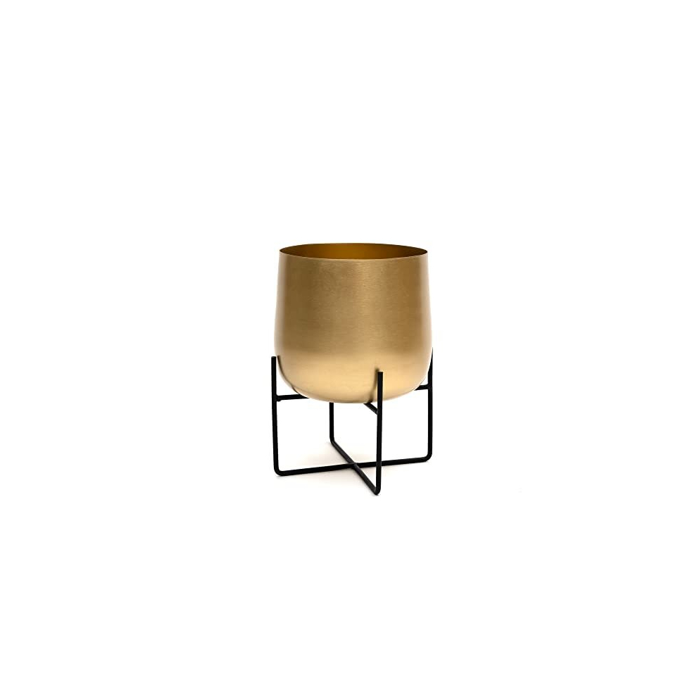 Olly & Rose Gold Plant Stand With Plant Pot Large Metal Planter with Black Stand Flower Pot for Outdoor and Indoor Plants and Flowers (Gold)