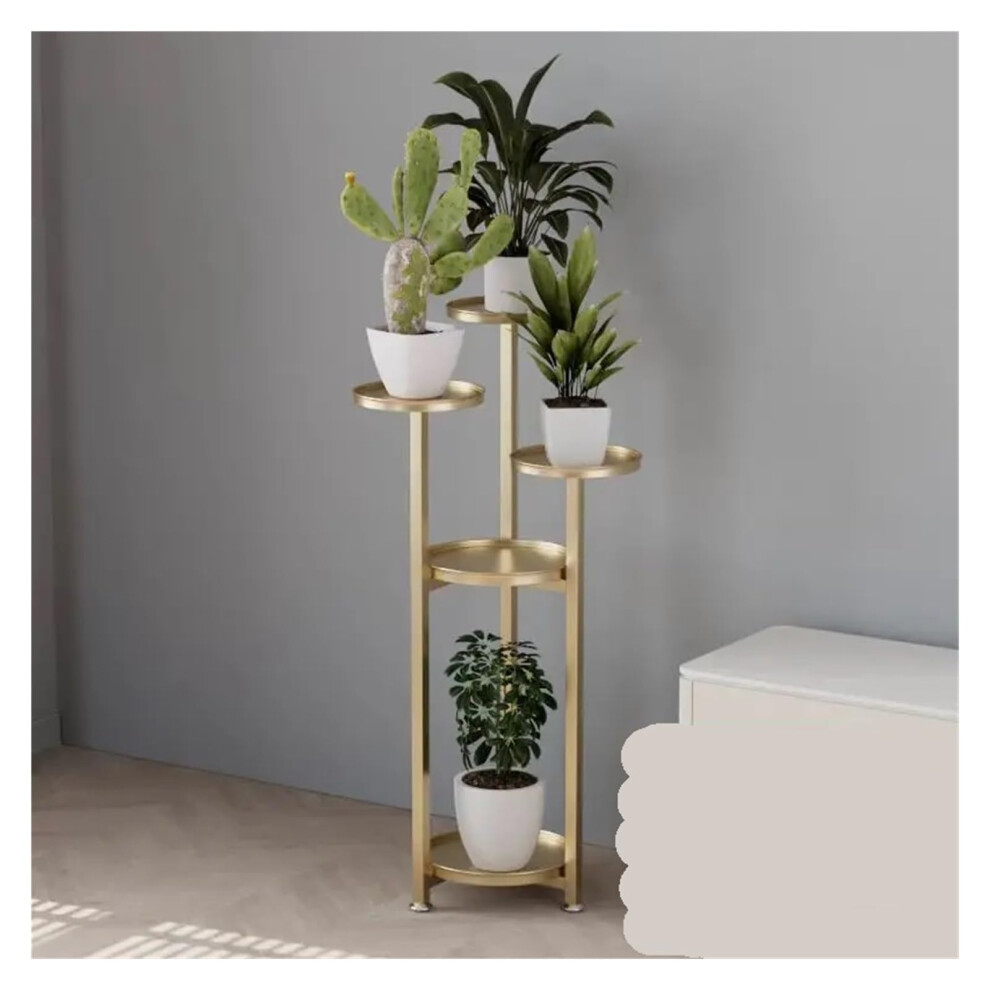 (Gold) Gold Plant Stand with Pot Rack Floor Type Shelf Metal Planter Indoor