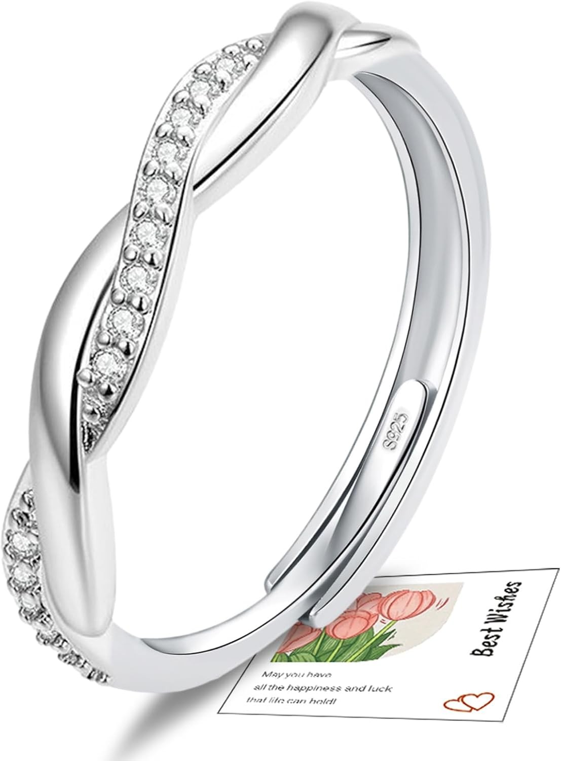 TOUPOP Infinity Rings 925 Sterling Silver Rings for Women I Love You Ring with Crystal Jewellery Gifts for Women White Gold Plated Adjustable Ring for Girls Mum (Blue crystal)