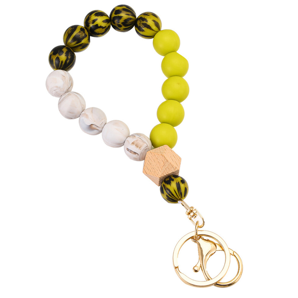 Wristlet Keychain for Women, Well Made Comfortable Wear Silicone Beaded Bracelet with Gold-Plated Ring, Ideal Gifts for Women Design Featuring Leather