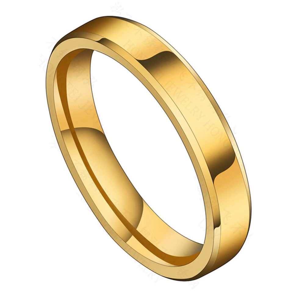18K Gold Plated Wedding Ring, Stainless Steel, 8 mm Wide, for Men and Women, Stainless Steel