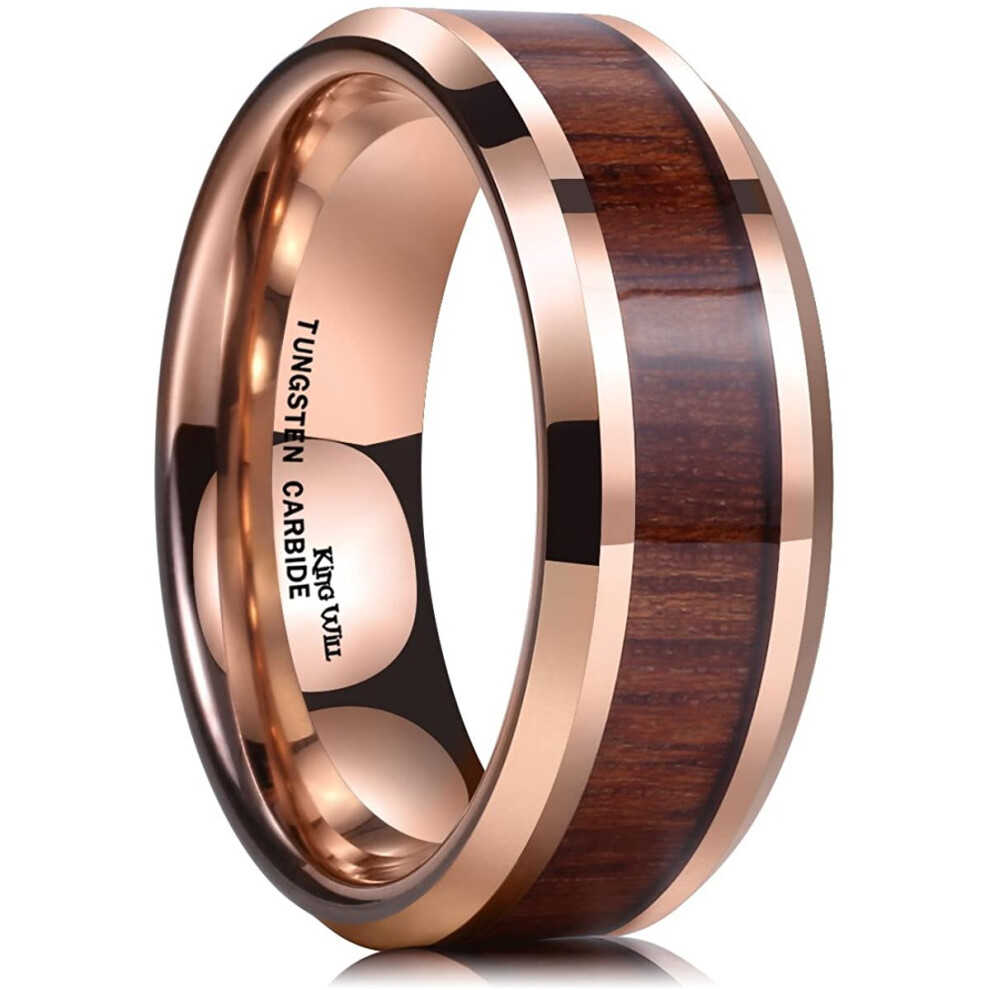 King Will NATURE 8mm Rose Gold Plated Tungsten Wedding Ring With Koa Wood Inlay Engagement Band