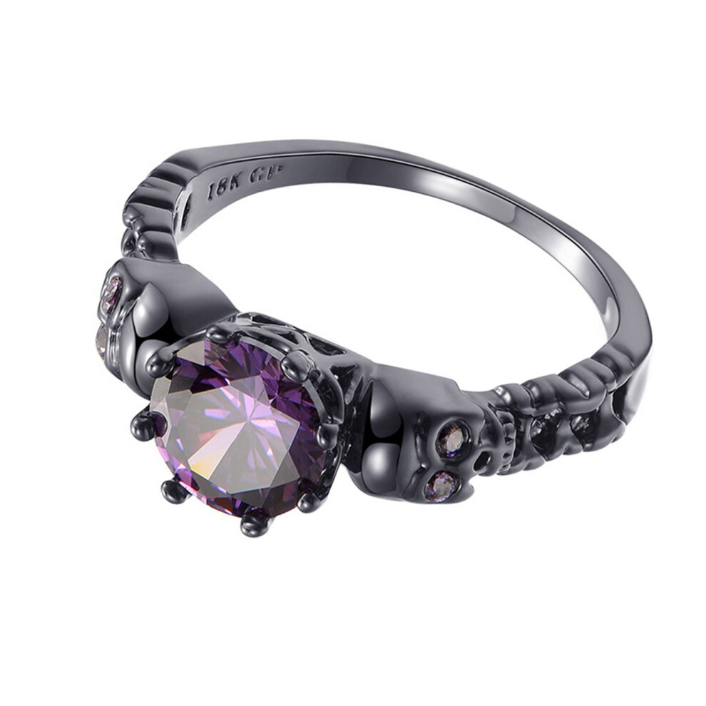 Black Gold Plated Gothic Ring, Zircon Crystal Accent with Red Crystal Heart, Adjustable Ring Band, Vintage Jewelry with Rose Flower Design, Copper