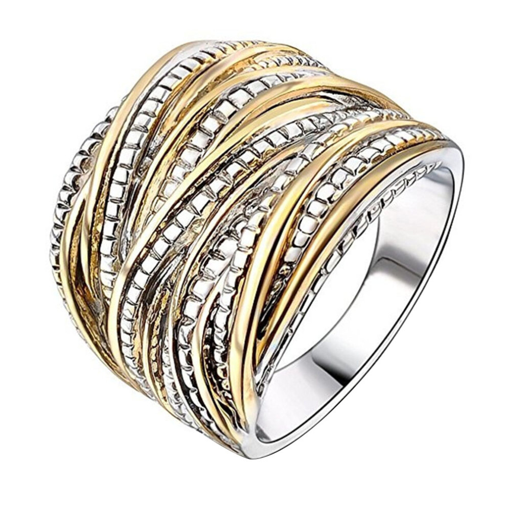 Chunky Statement Rings with Twisted Cable Design, 18K Gold Plated Wide Band Ring, Two Toned Designer Inspired Jewelry for Her, Hypoallergenic Non Oxid