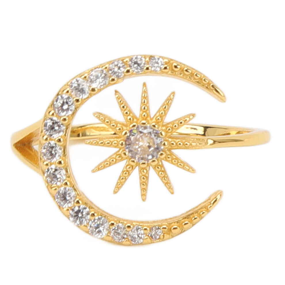 Moon and Star Ring for Women, Gold Plated North Star Ring, Adjustable Moon Star Crescent Ring, Exquisite Jewelry Gift, Dainty Crystal Crescent Finger