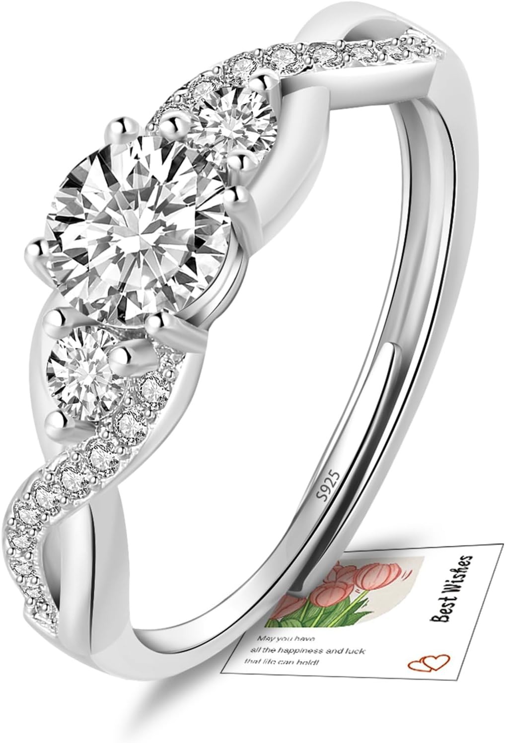 YOEE 925 Sterling Silver/Rose Gold/Gold Plated Engagement Ring for Women, Adjus