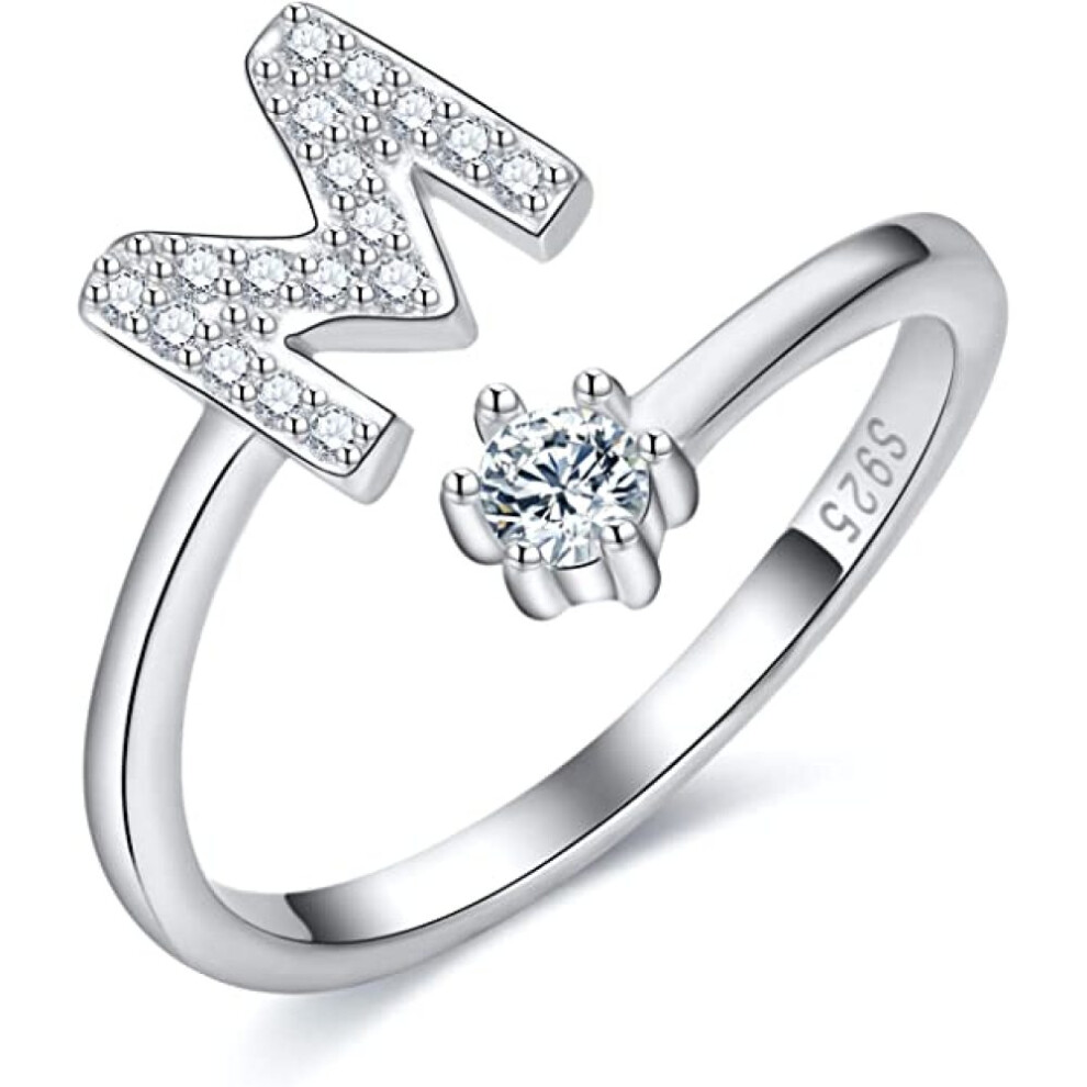 Hypoallergenic Sterling Silver Initial Ring, Comfort Fit Design with Open Design 18K Gold Plated Adjustable Initial Ring, Personalized Initial Rings