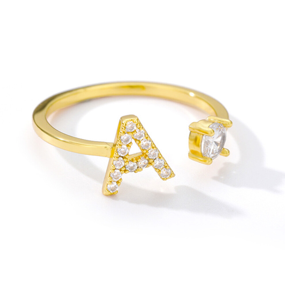 Adjustable Initial Ring for Women, Non Tarnish Gold Plated Letter Ring with Open Design and Stackable Fashion Jewelry Feature, Rhinestone Initials