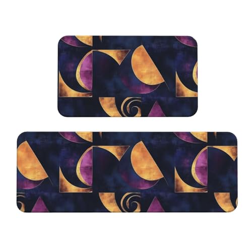TZTTZT Antifatigue Kitchen Mats for Floor 2 Piece - Abstract Purple Gold Print Kitchen Rugs Non Slip Washable, Runner Rug Standing Mat for Office/Laundry/Bathroom/Home Decor and Accessories