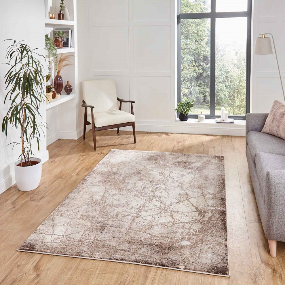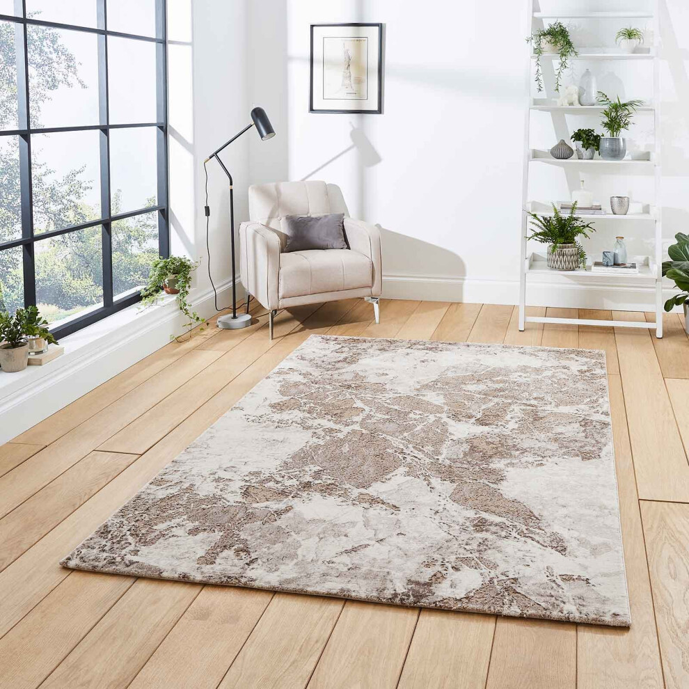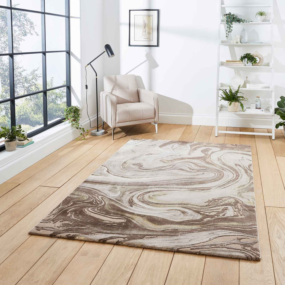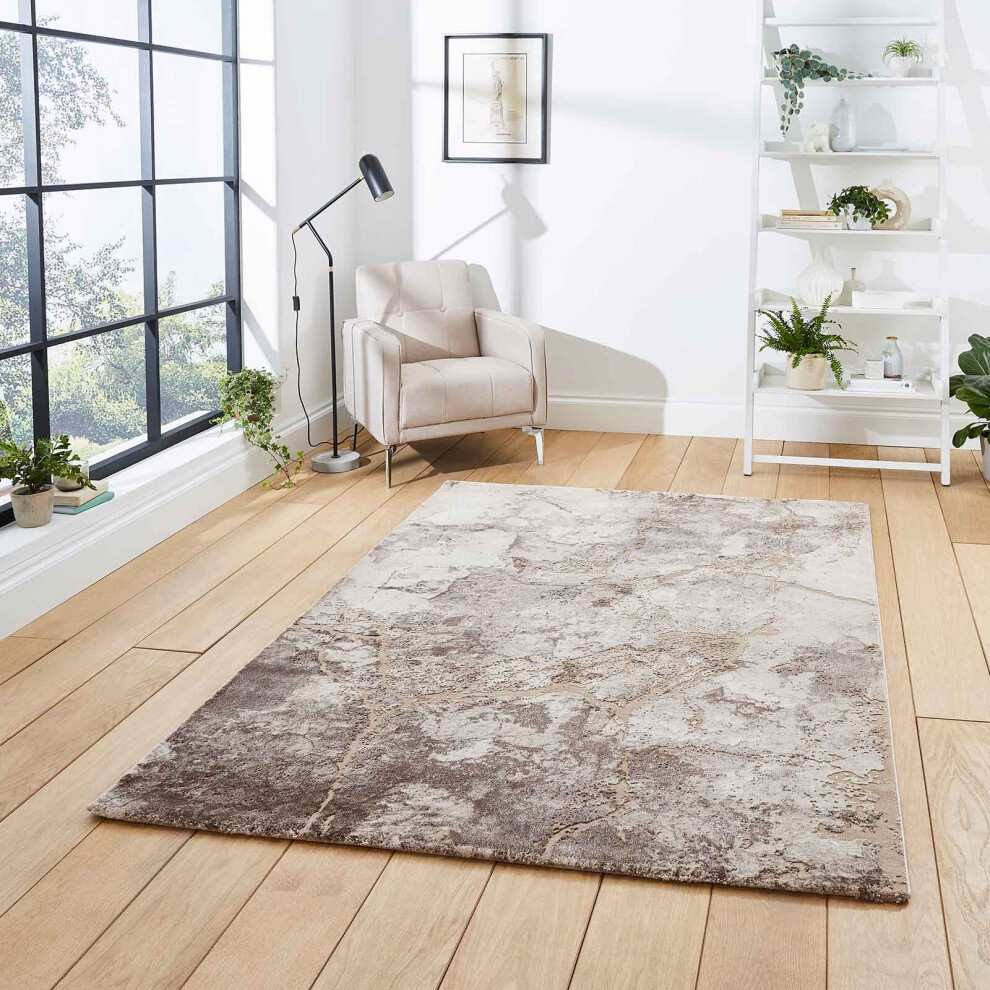 (50035 Beige, 120 x 170 cm) Gold Silver Modern Rugs Abstract Small XL Large Living Room Rug Bedroom Capet UK