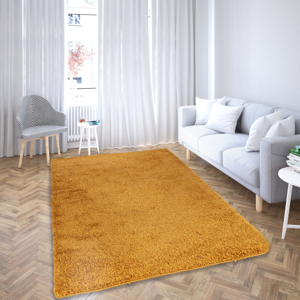 (120 x 170 cm (4ft x 5ft 6")) New Living Room Rugs Large Plain Gold Shaggy Rugs