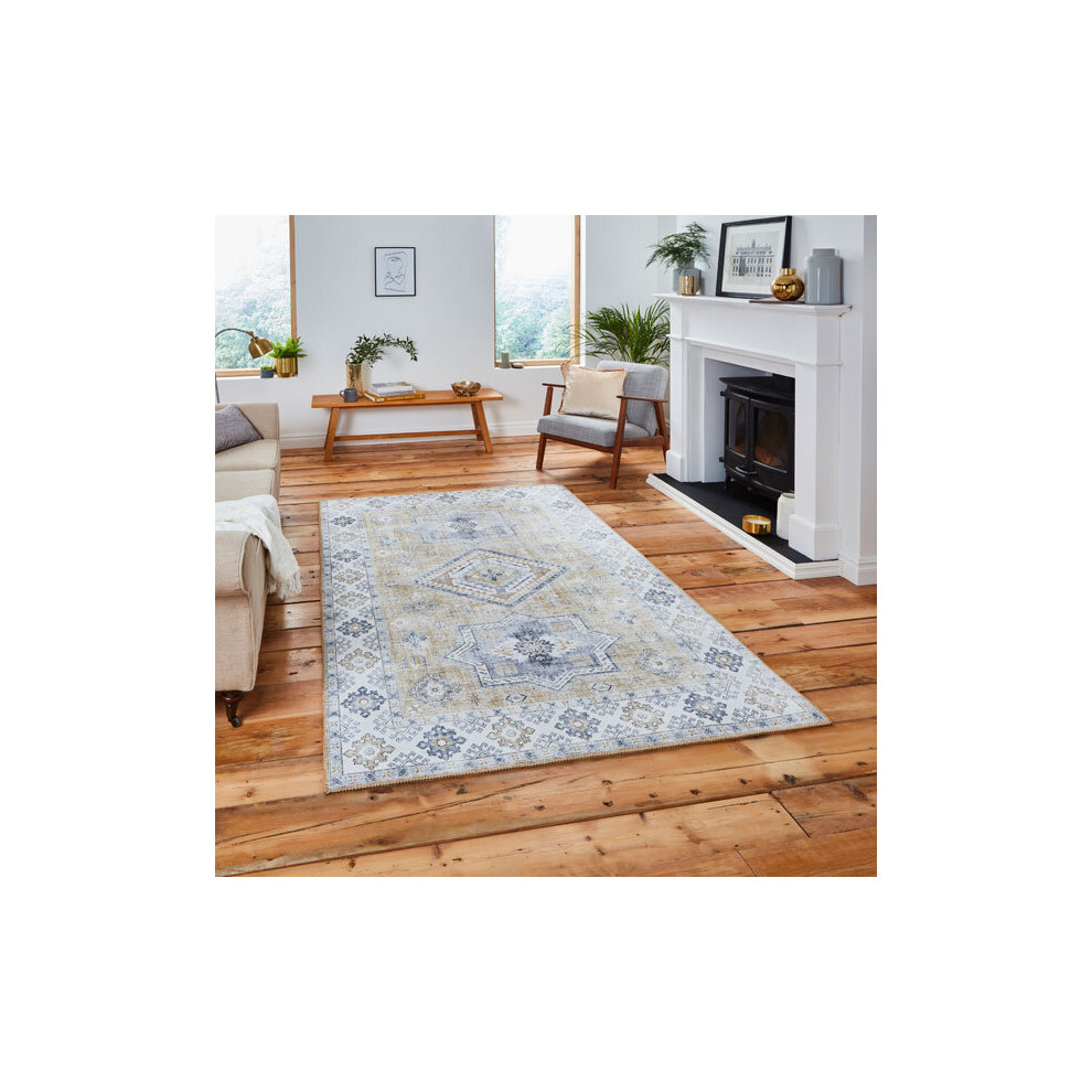 Aspire Homeware Machine Washable Gold Red Rugs Living Room 120 x 170 cm Large Short Pile Area Rugs for Bedroom Dining Room, Non Slip Carpet for Kids Room Soft Vintage Design Boho Rug, Whisper