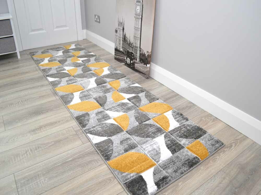 Gold Grey Floor Rugs Small Extra Large Thick Quality Mustard Ochre Colour Cheap