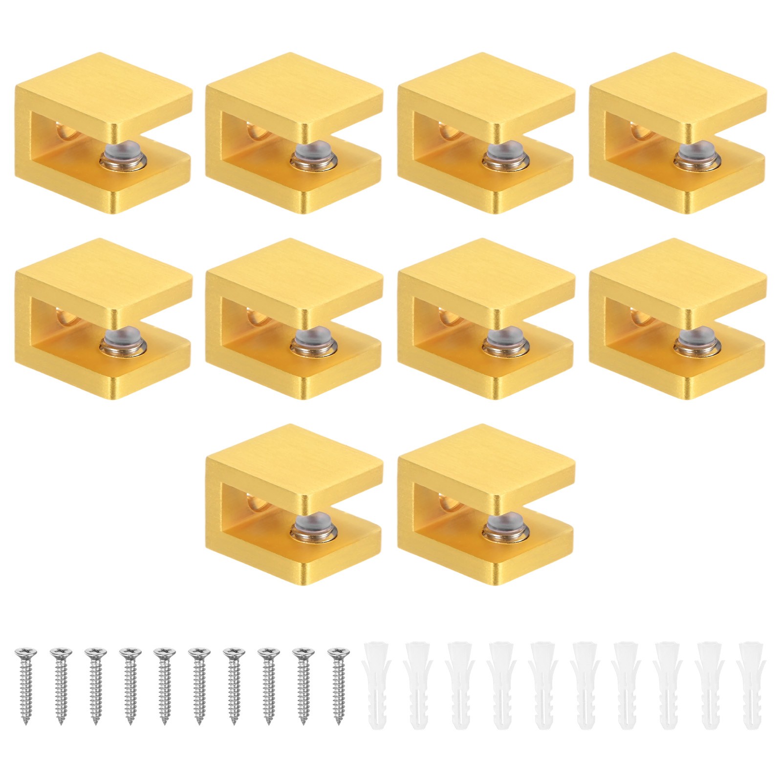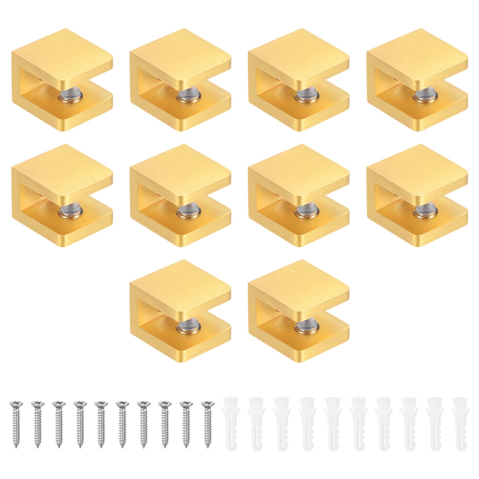 10-Pack Glass Shelf Brackets Adjustable Brass Clamp for 8-10mm Thick Glass[Gold]