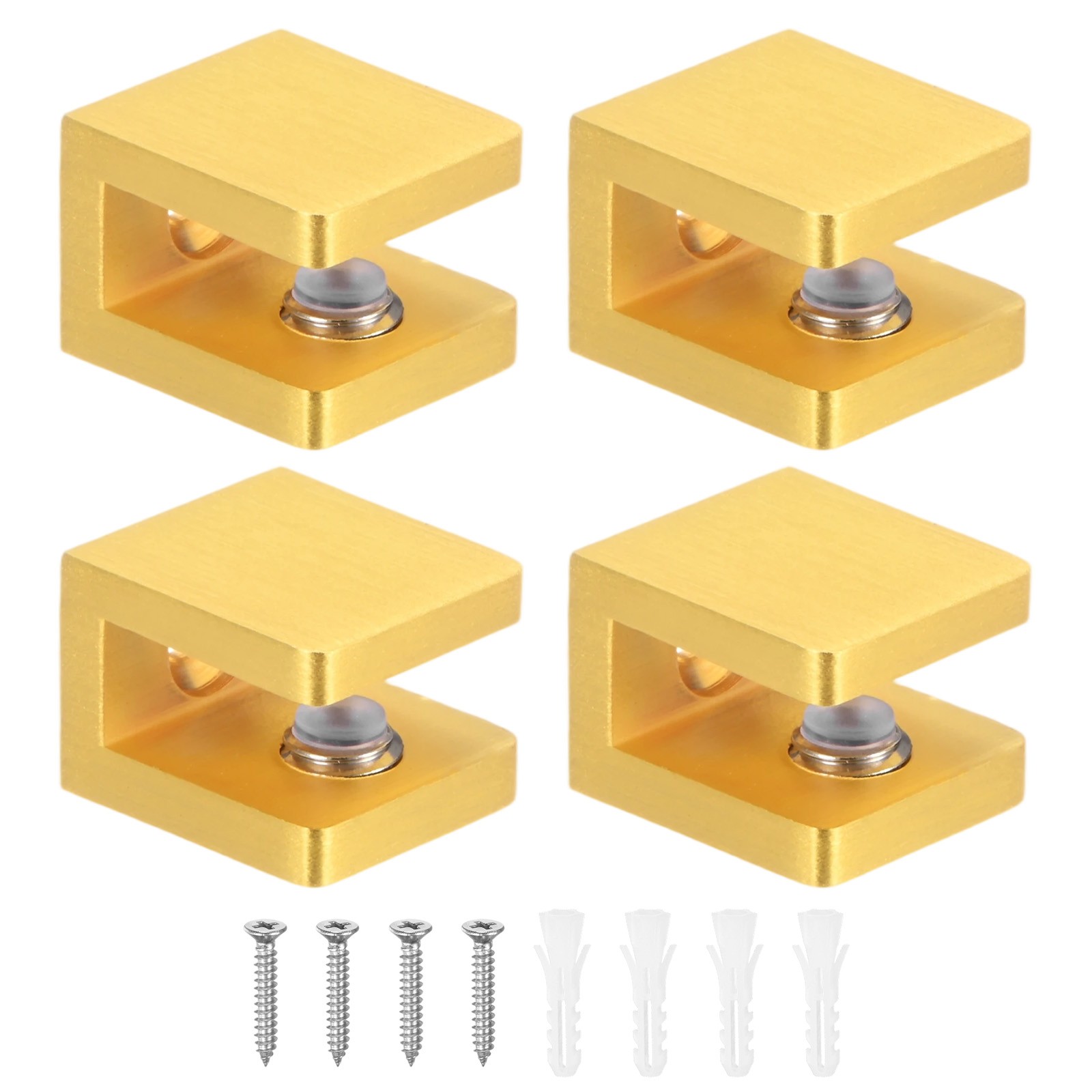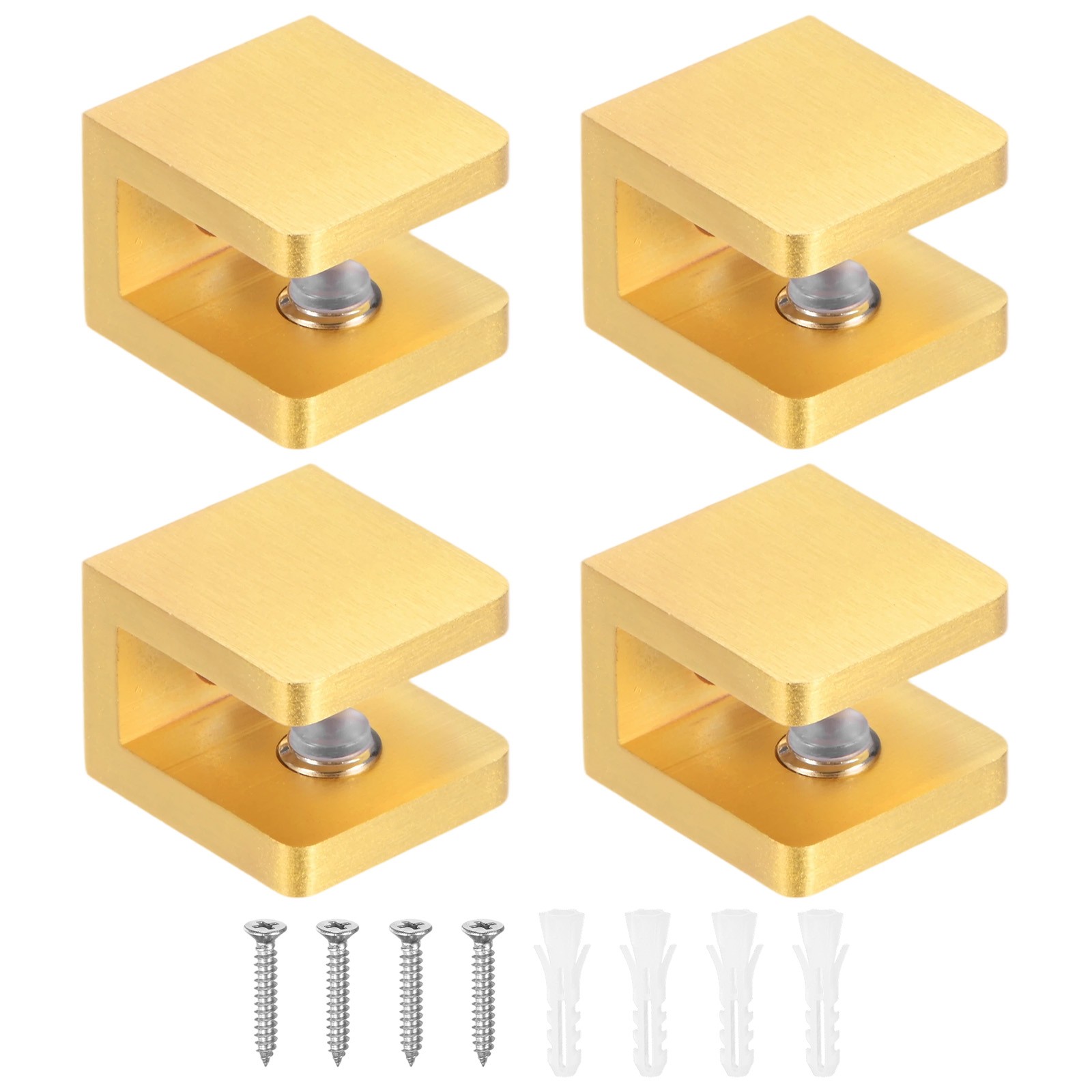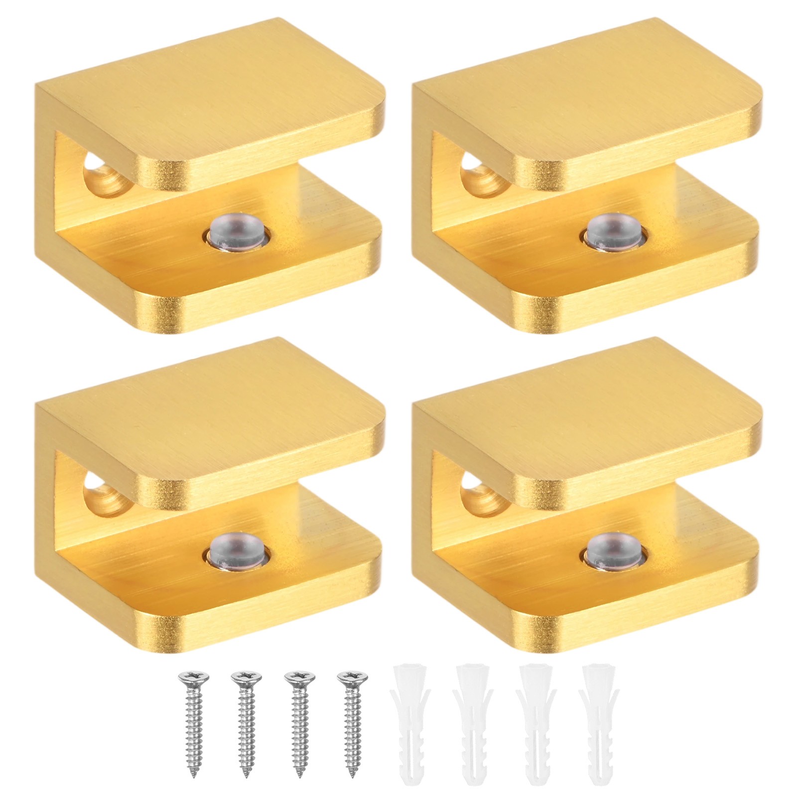 4-Pack Glass Shelf Brackets Adjustable Brass Clamp for 10-12mm Thick Glass[Gold]