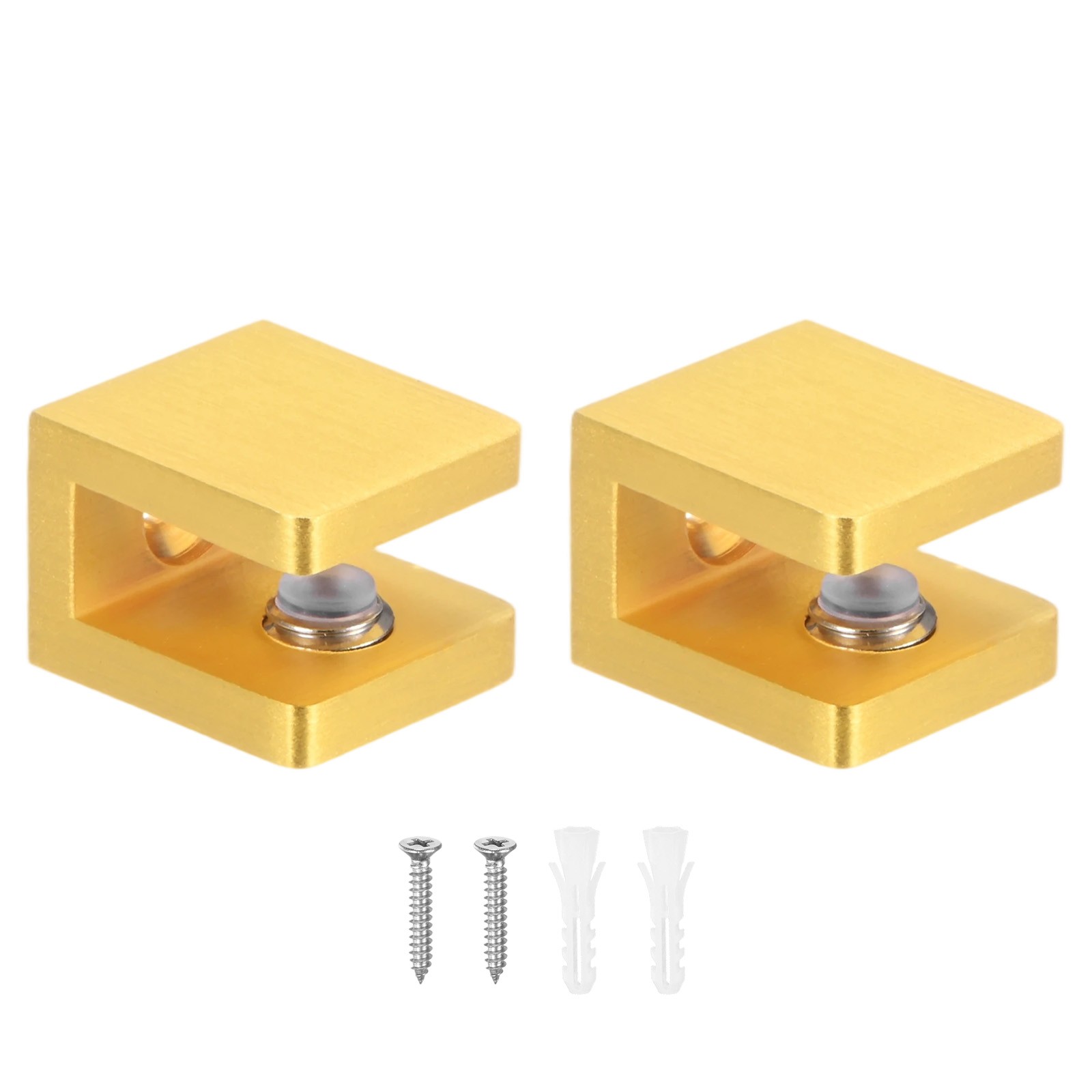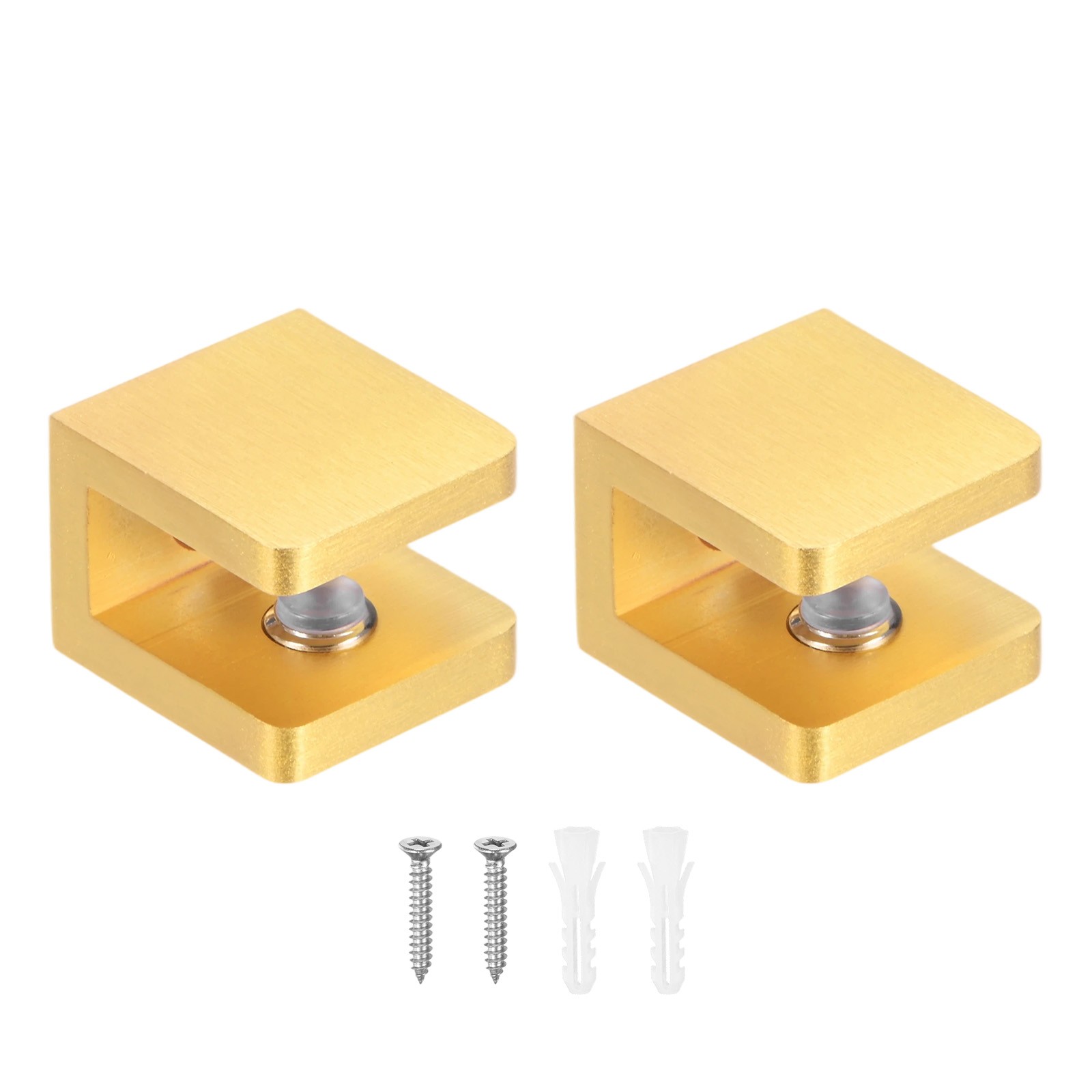 2-Pack Glass Shelf Brackets Adjustable Brass Clamp for 10-12mm Thick Glass[Gold]