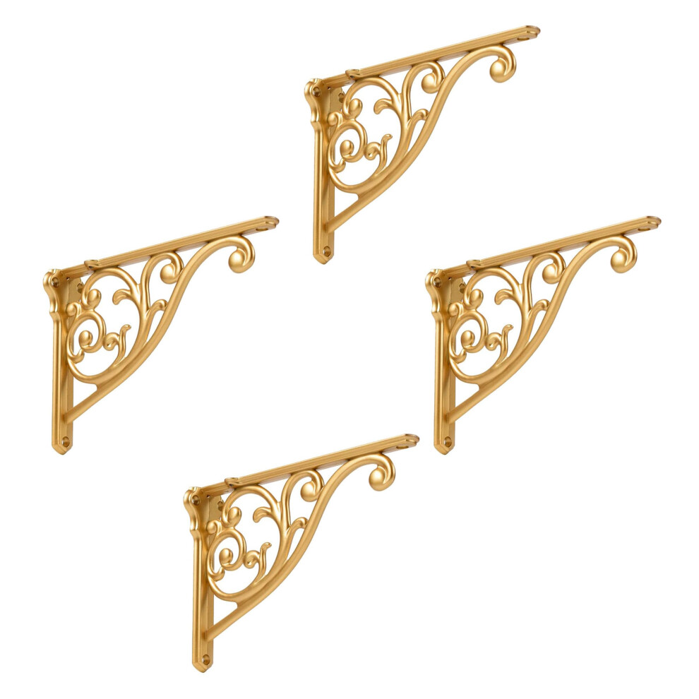 Heavy Duty Antique Gold Shelf Brackets 4 Inch Set of 4 Victorian Wall Brackets for Kitchen Decor