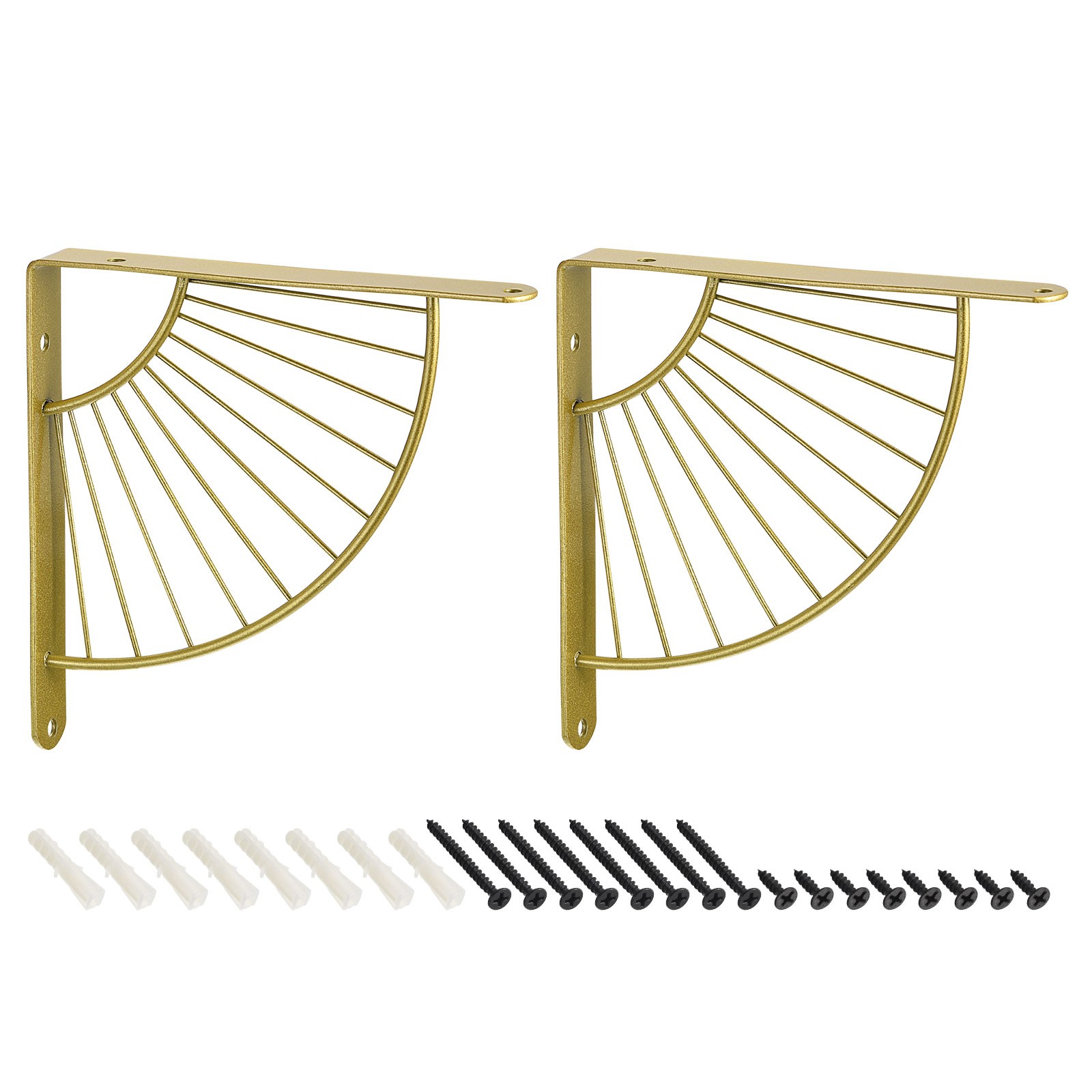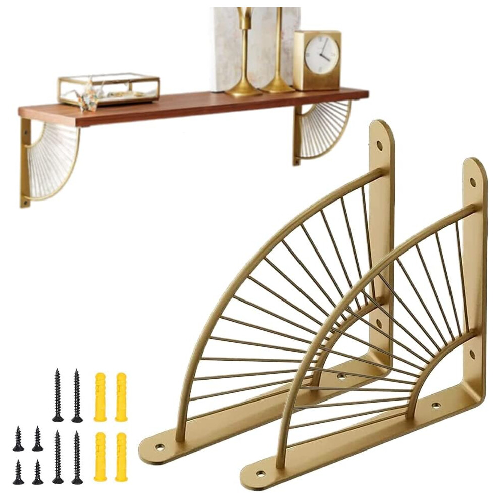 XJ 2-pack shelf brackets in fan shape gold, shelf bracket wall