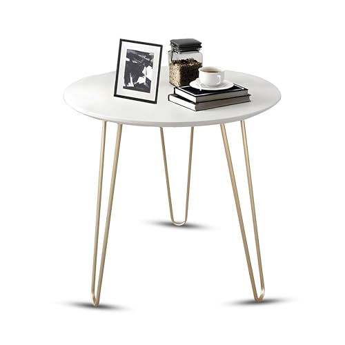 JYZ Beautiful White and Gold Side Table with Metal Legs, Round Coffee End Table, Stylish Small Coffee Table for Living Room, Bedside, Snack, Lamp, or Tea Table, Modern Elegant End Table (White, Gold)