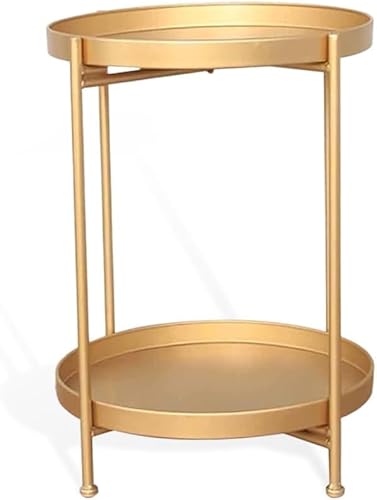 danpinera 2-Tier End Table, Gold Round Side Table, Small Side Table with Removable Tray, Metal Folding Accent Coffee Table, Anti-Rust Nightstand for Bedroom Balcony Patio Living Room (Gold)
