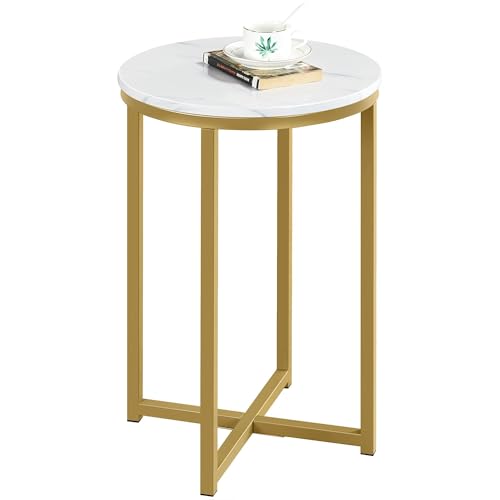 Yaheetech Round Side Table, Marble Effect Gold Side Table with X-Based & Sturdy Metal Legs, End Table Bedside Table for Bedroom/Living Room/Office, Mustard Gold, 40.5 x 40.5 x 61 cm
