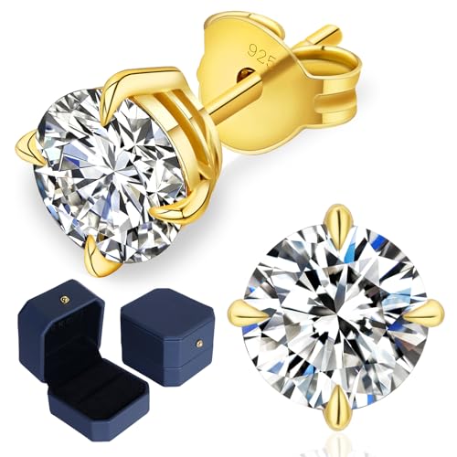 MomentWish 18ct Gold Studs Earrings, 2Ct/6.5mm Moissanite Yellow Gold Diamond Earrings Hypoallergenic Sterling Silver Studs Sparkly Solitaire Gift for Women Her Men with Gift Box