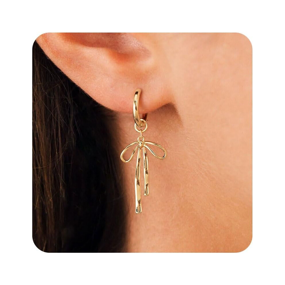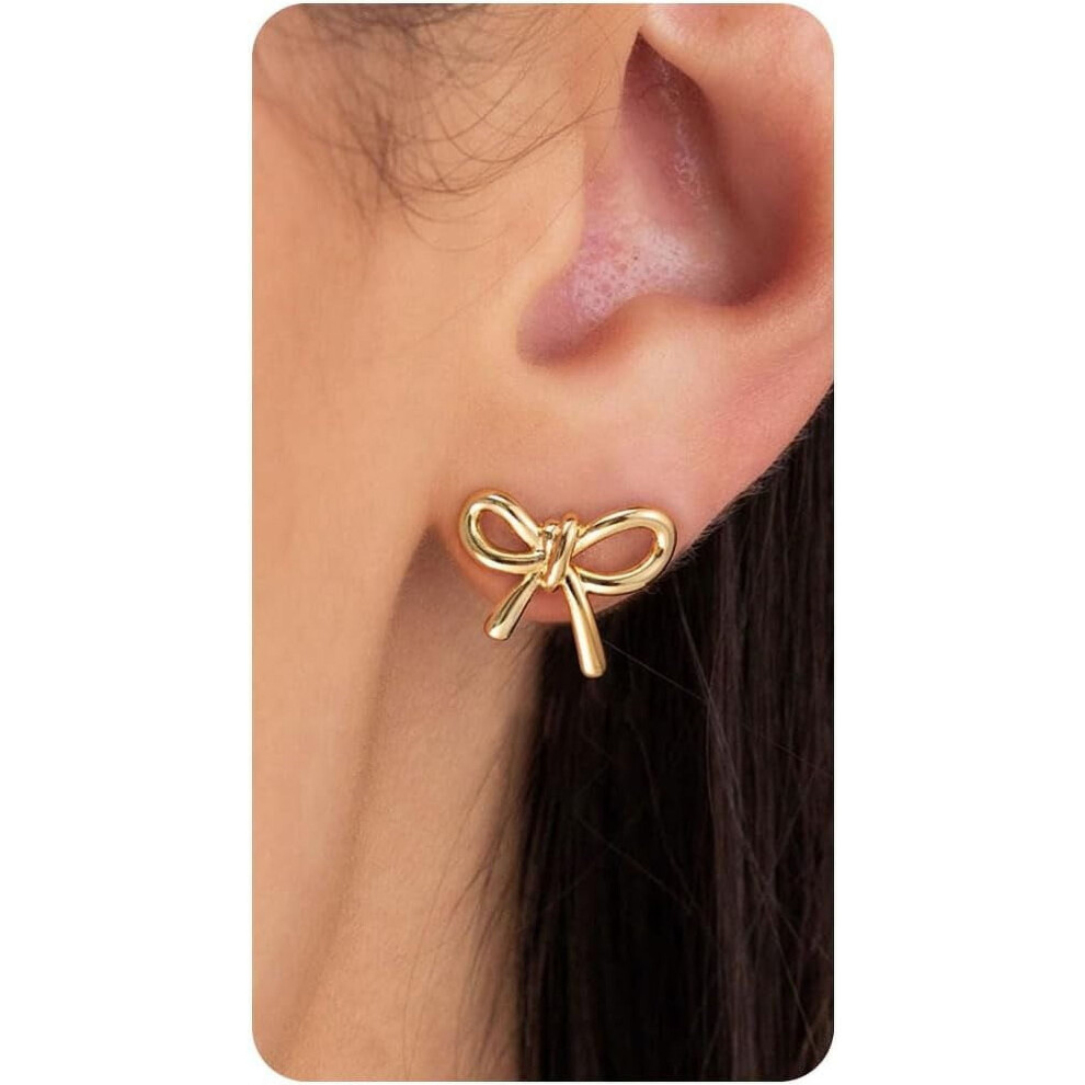 Gold Studs Earrings for Women - 14K Gold Plated Bow Stud Earrings for Women Small Ribbon Stud Earrings Coquette Bow Earrings for Women Trendy Jewelry
