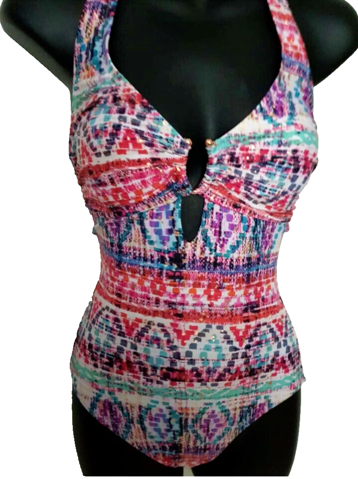 Antalia Tummy Control Swimsuit 8 Bathing Suit Swimming Costume Halter Multicolor