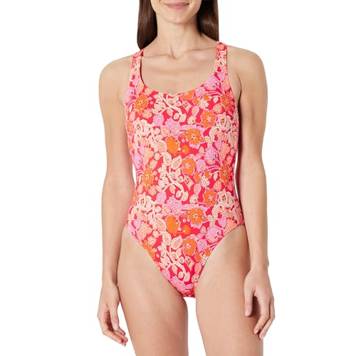 Amazon Essentials Women's Criss-Cross Back One-Piece Swimming Costume, Bright Poppy Red Folk Floral, 18