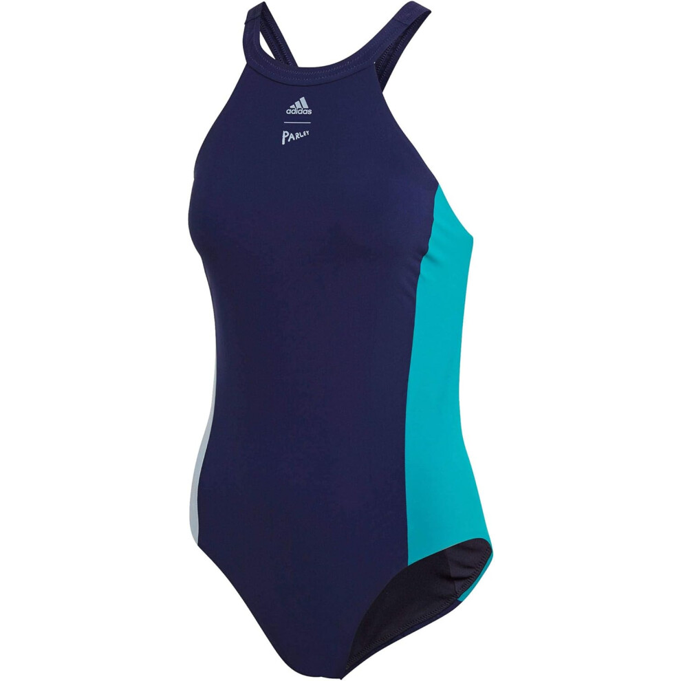 Women's One-Piece Training Swimsuit - High Neck Chlorine-Resistant Swimming Costume for Fitness and Lap Swimming with Wide Straps