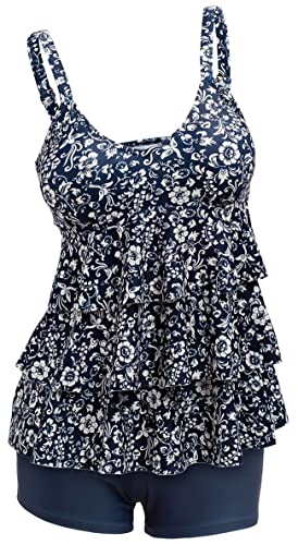 ECUPPER Womens Tankini Sets Swimsuits Ruffled Flounce Printed Swim Tops and Shorts 2 Piece Plus Size Swimming Costume Floral XL