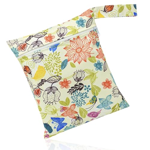 Lotsdonxia Portable Waterproof Wet Bag Reusable Zippered Lightweight Durable On-The-Go Storage Pouch for Nappies Wet Clothes Swimwear Travel (Flower Pattern)