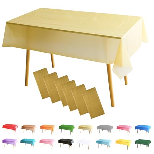 MOMAHUA 6 Pack Gold Table Cloth Party Tablecloths, 137x274cm Rectangle Table Covers, Large Wipe Clean Plastic Tablecloth Party for Picnic, Baby Shower, Halloween Party, Christmas Table Décor