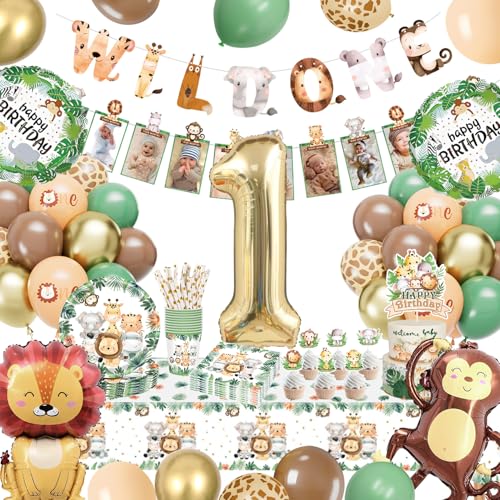 Wild One Birthday Decorations, 1st Birthday Decorations for Boys Girls, Safari Jungle Theme Party Decorations With Balloons, Paper Plates, Cups, Tablecloths, Wild One Party Supplies for 20 Guests