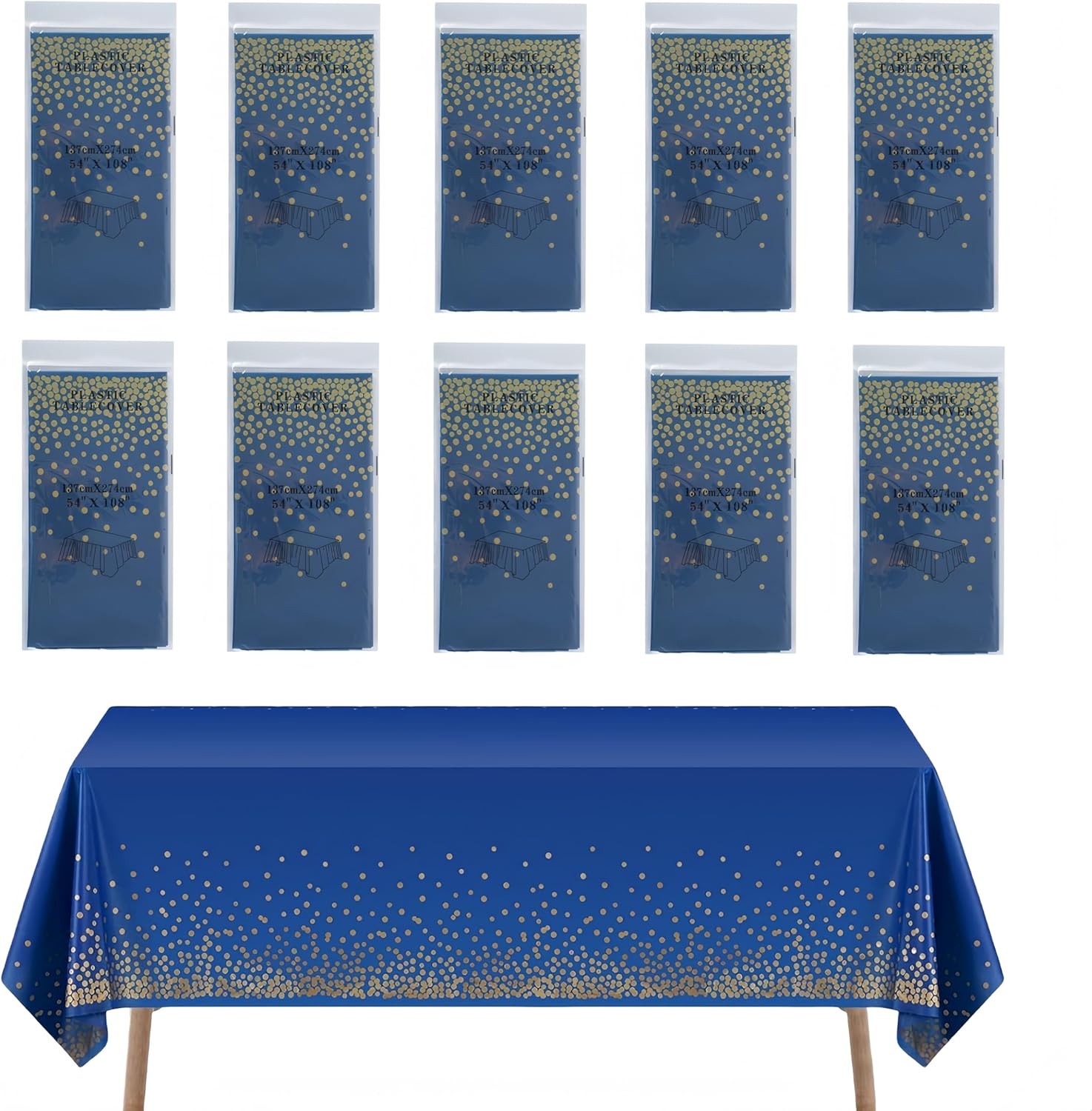 CEILIWEN 10-Pack Navy Blue & Gold Disposable Party Tablecloths 274x137cm