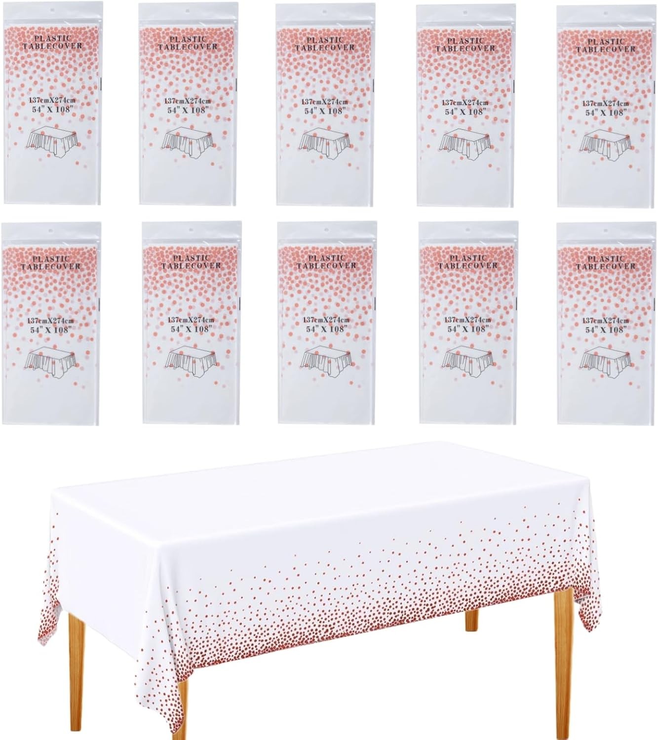 CEILIWEN 10-Pack White & Rose Gold Disposable Party Tablecloths 274x137cm