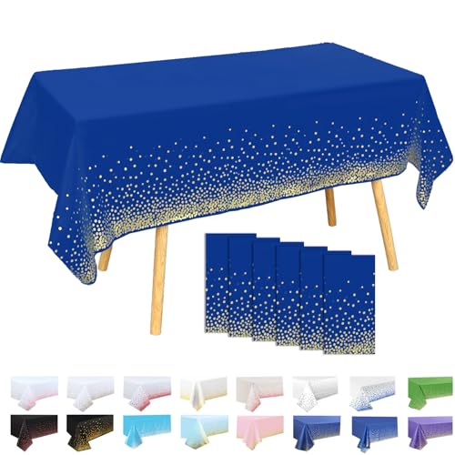 MOMAHUA 6 Pack Dark Blue and Gold Dots Table Cloth Party Tablecloths, 137x274cm Confetti Rectangle Plastic Table Cover for Picnic, Baby Shower, Wedding, Birthday, Xmas Halloween Table Décor