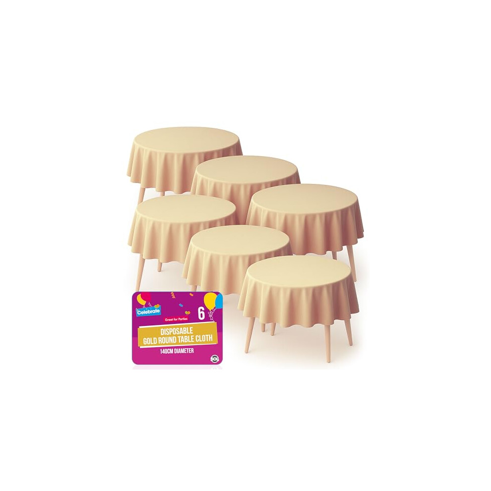 SOL 6pk Round Gold Tablecloths 140cm Party Disposable Tablecloths for Circular Table Cloth Cover - Durable Spill Protection - Perfect for Birthdays