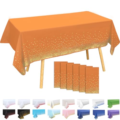 MOMAHUA 6 Pack Orange and Gold Dot Table Cloth Party Tablecloths, 137x274cm Confetti Rectangle Plastic Table Cover for Picnic, Baby Shower, Wedding, Birthday, Xmas Halloween Table Décor