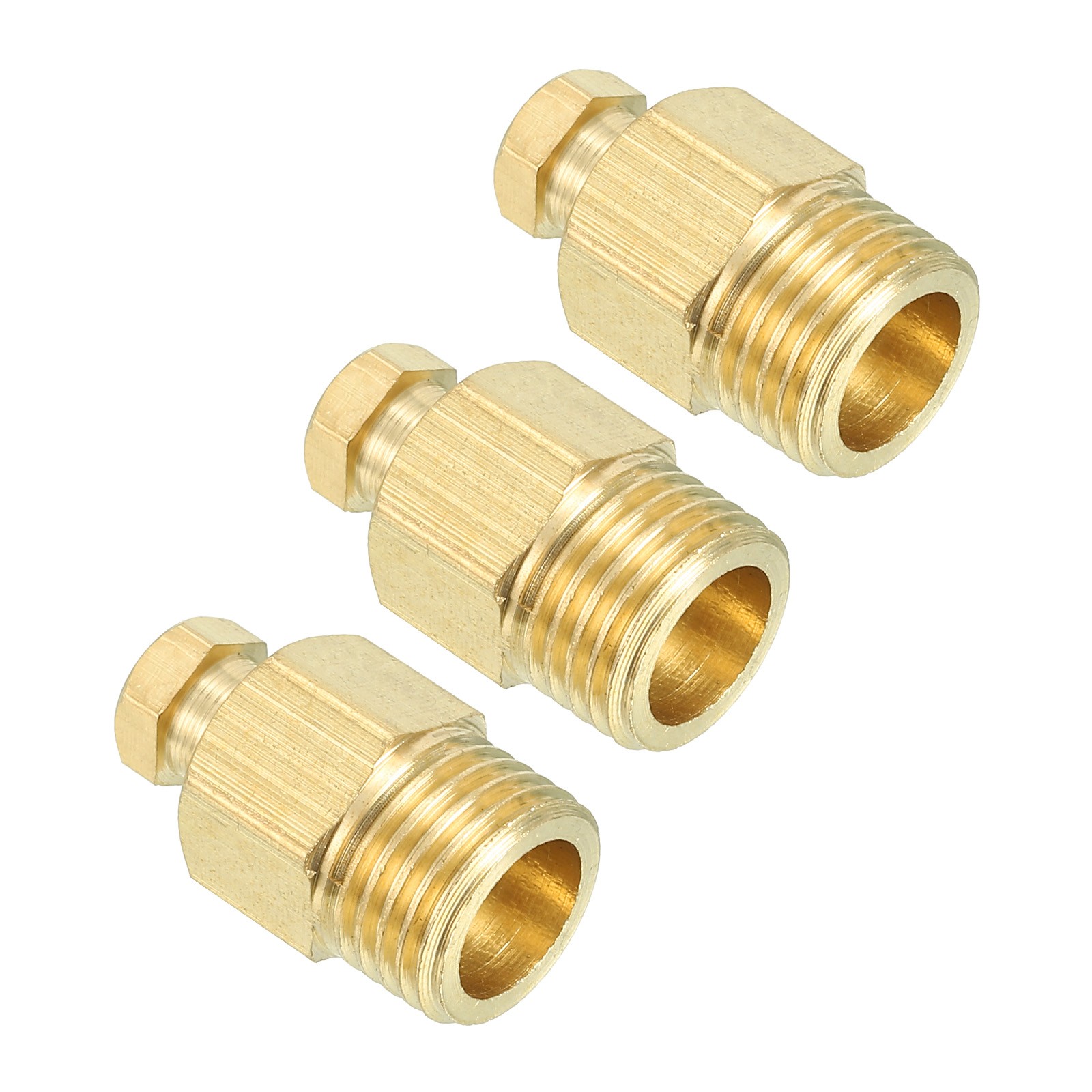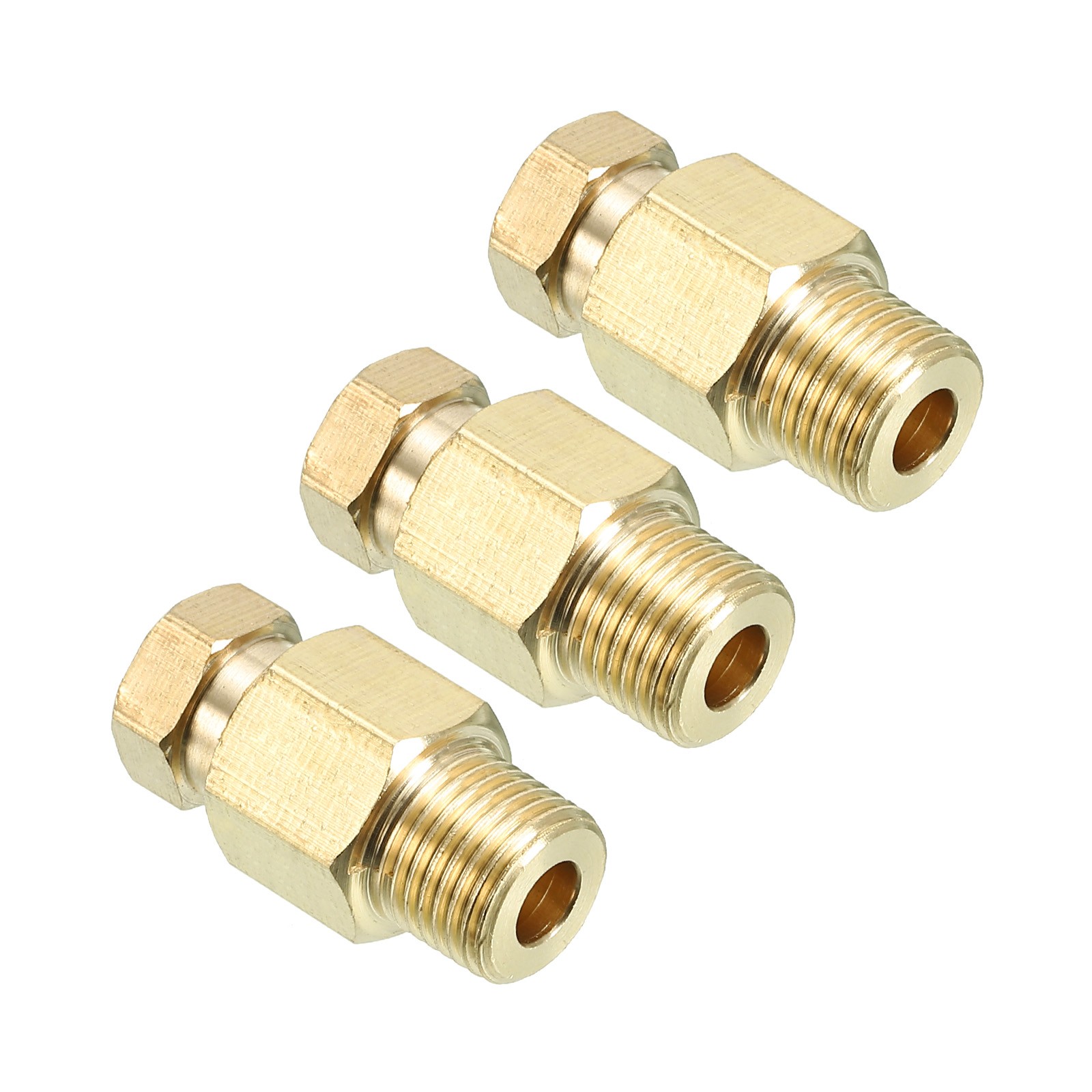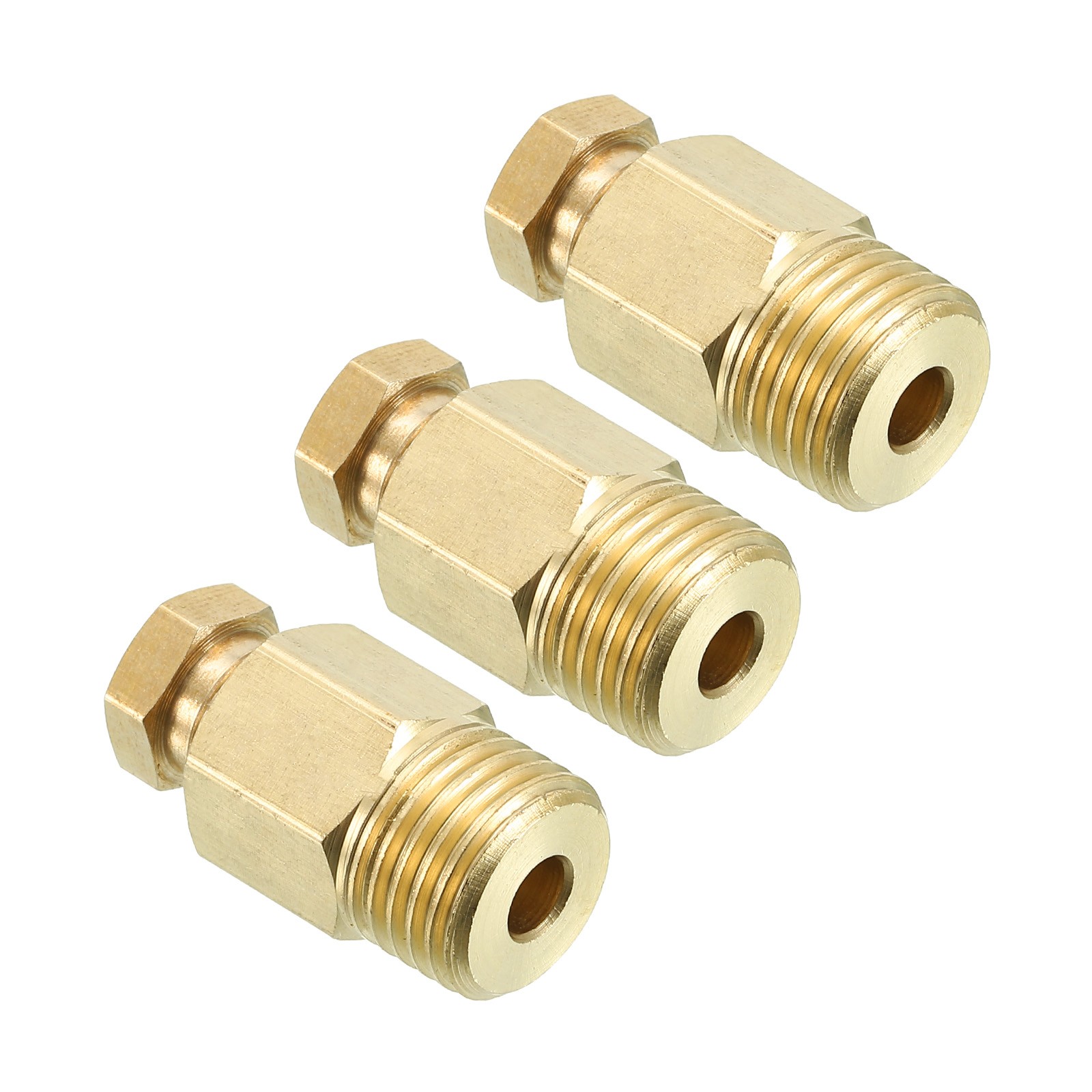 3Pcs Brass Tube Compression Fitting, 4mm Tube OD 1/8 BSP Male Thread Gold Tone