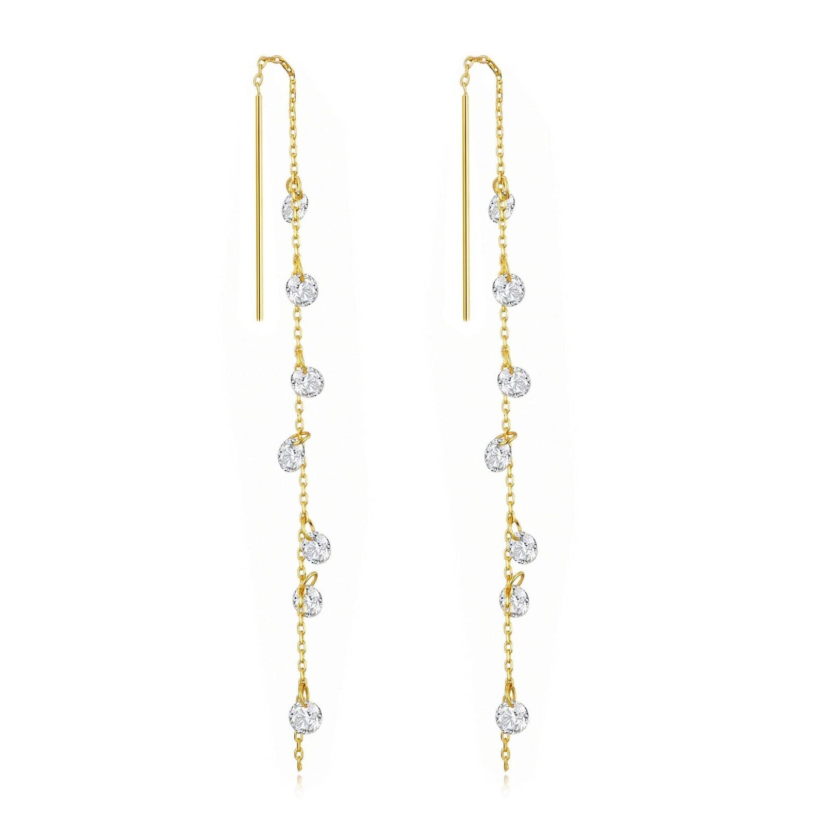Gold Plated Dangle Thread Earrings Created with Zircondia® Crystals