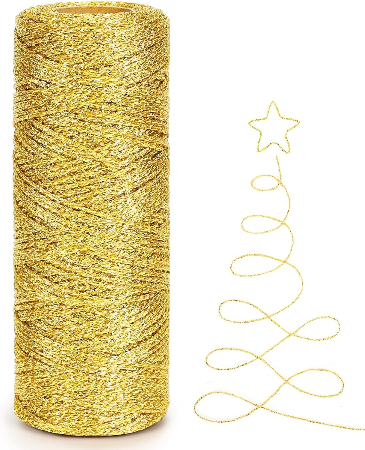 ASelected 2PCS 100M Decorative Metallic String,1.5mm Gold Twine String,Gold Thread Twine,Jewelry Thread Cord,Metallic Thread Cord for Christmas Wedding Decoration DIY Crafts Gift Wrapping