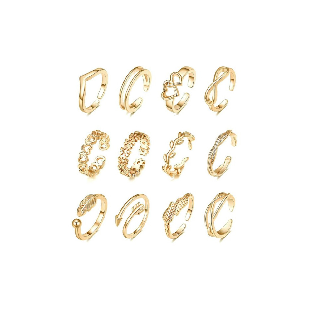 12 PCS Gold Toe Rings for Women, Adjustable Rings Womens Stackable Ring for Wome