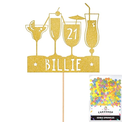 Personalised Cocktail Glitter Cake Topper - Gold Any Custom Name & Age Gin Vodka Glitter Cake Decoration and Sprinkles - Happy Birthday Decorations - Personalised Toppers for Cakes by Cakeshop