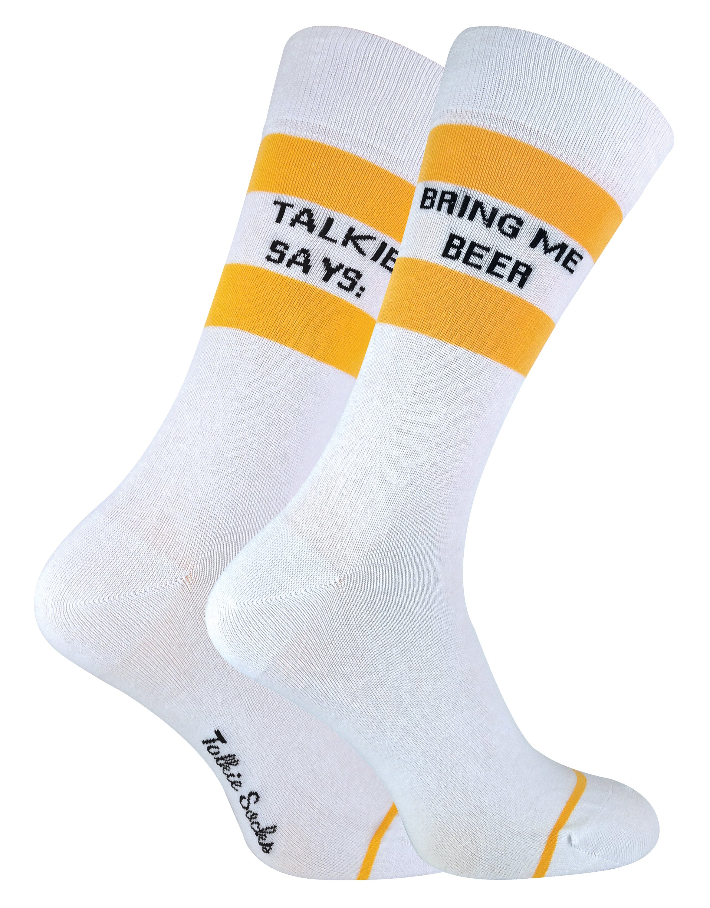 Sock Snob Mens TALKIE SOCKS - Unisex Cotton Novelty Bring Me Beer & Vodka - Gold - Size UK 6-11